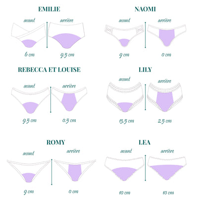 La taille de la zone d'absorption de nos culottes dépend du modèle.